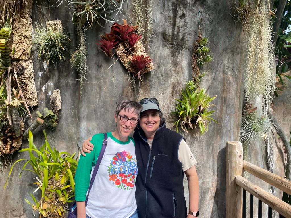 I can’t believe the size of the palm fronds behind us. We are up at least 10 stairs on a landing.