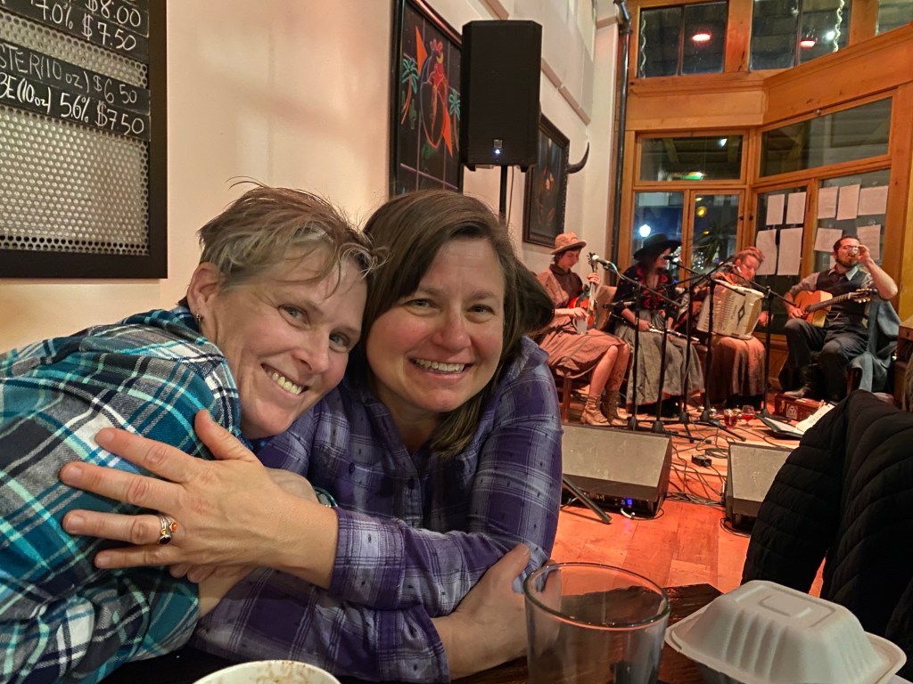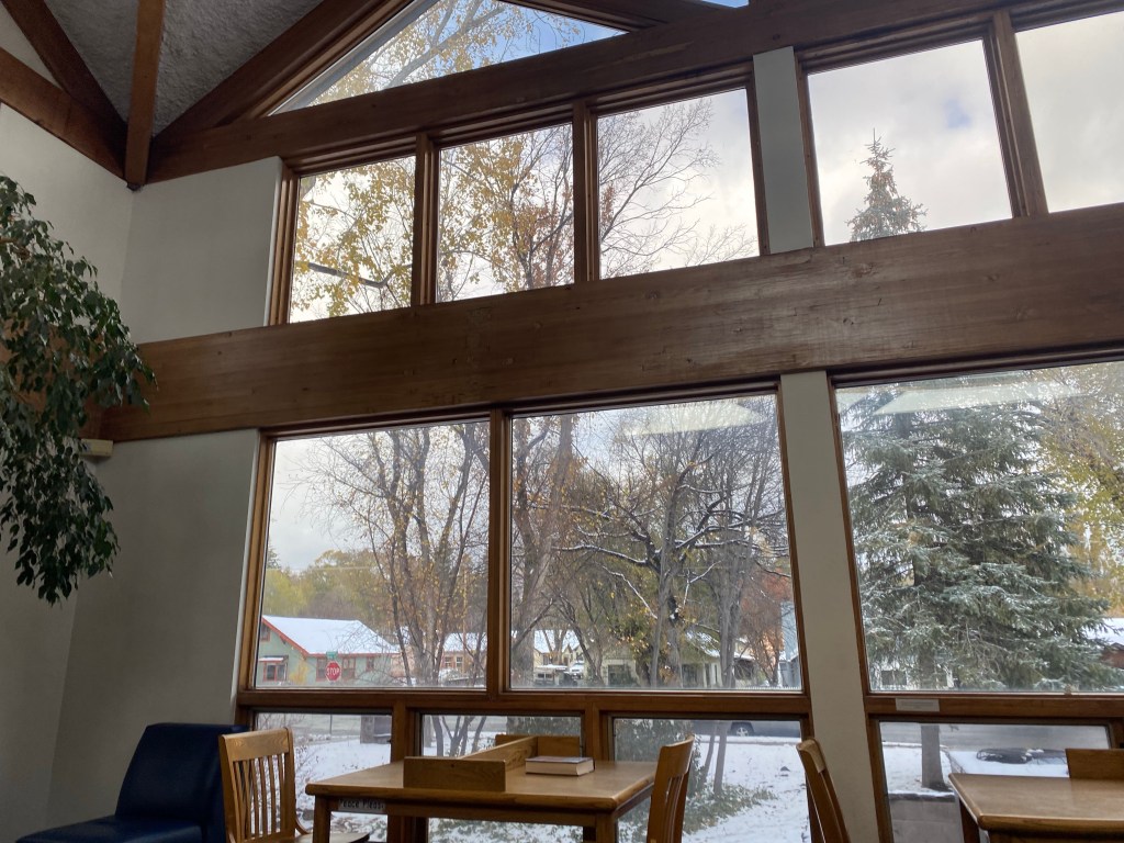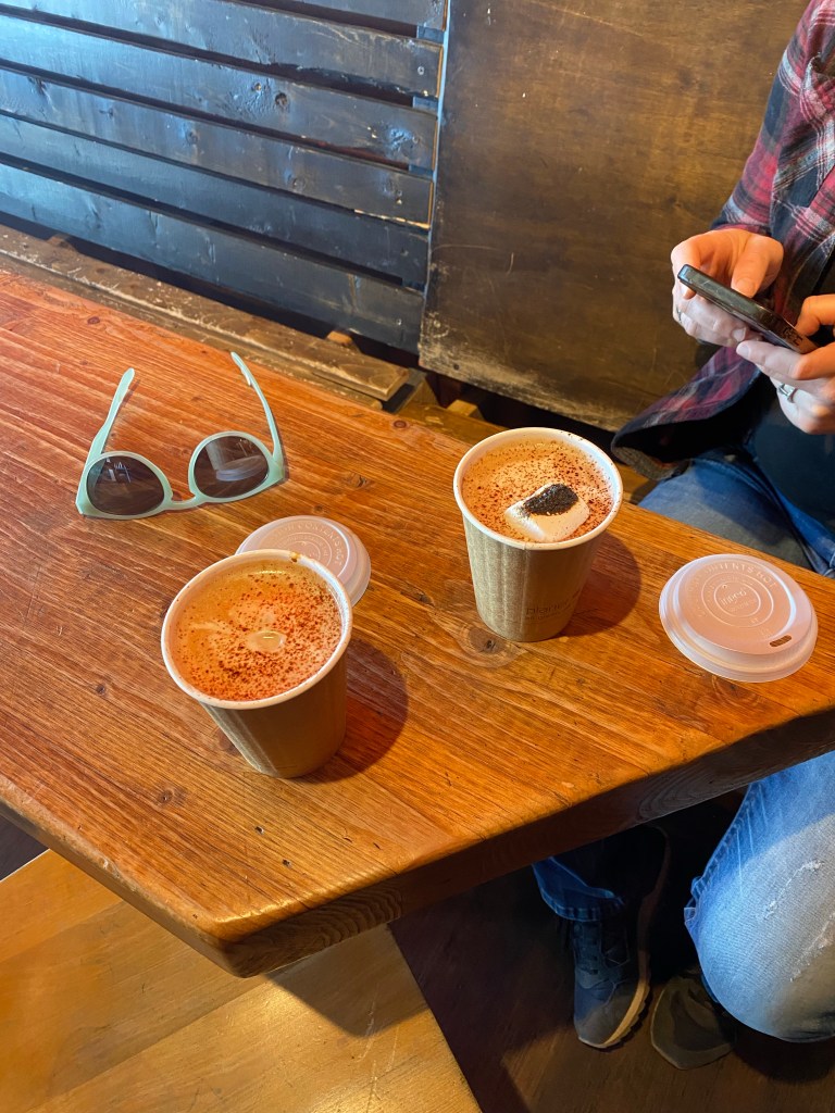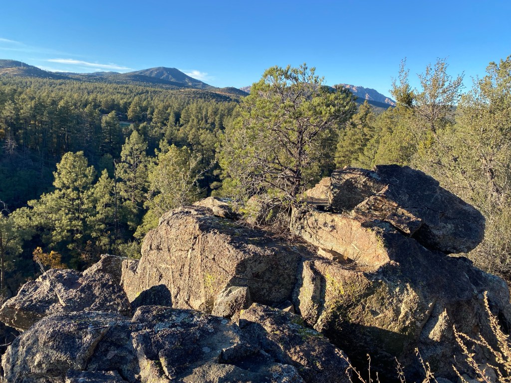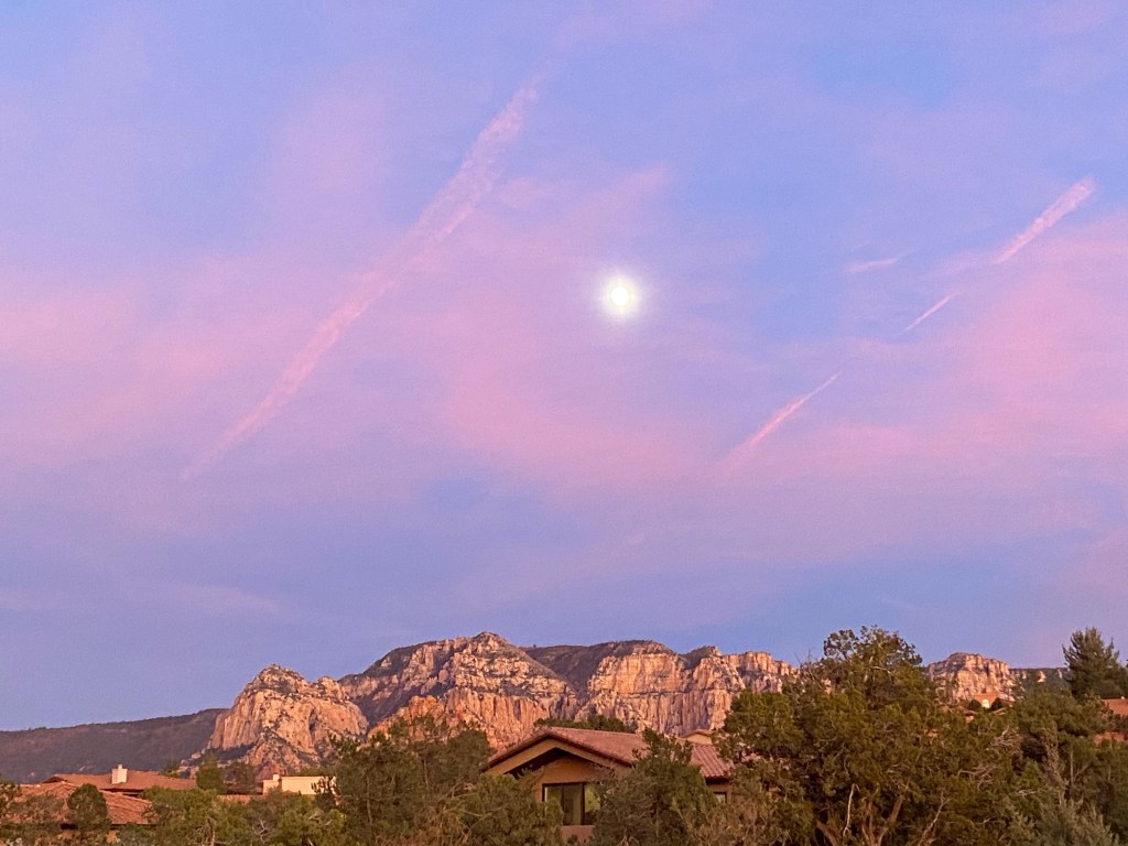 Snow from the library near one of the FIVE fireplaces.Riding in Prescott a last day. It was cold and we used our warm gloves which are not padded and bruised Zarah’s hand causing weird nerve cramps that have kept her off the bike a lot lately After the ride (so my hair is terrible) Last dinner with Mary Ann. There was this amazing band from Bisbee there too.Last visit to the Grand CanyonFinally made it to Desert View Watchtower, but it was closed to going up the tower 😦I also love the bleached wood with the view. The idea that a “Common Raven“ just lives here and can fly right off those cliffs and explore… The tenacity of life in the desert. Sideways out over the precipice, catching the sun and the rain and the wind. Winding it’s roots deep into the cracks to hold on. Last golden hour in SedonaWith sunsetSunset that makes you pull off the road to take pictures And more pictures The rocks with the sky is so amazing there. Last fancy coffee at Fire Creek – the Dark sky has a shaved pillow mint in it and the s’mores is served with the marshmallow on fire. Pretty fun. And a good way to fuel up for the drive to Albuquerque.
