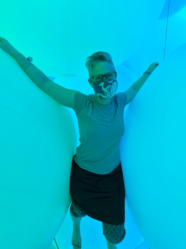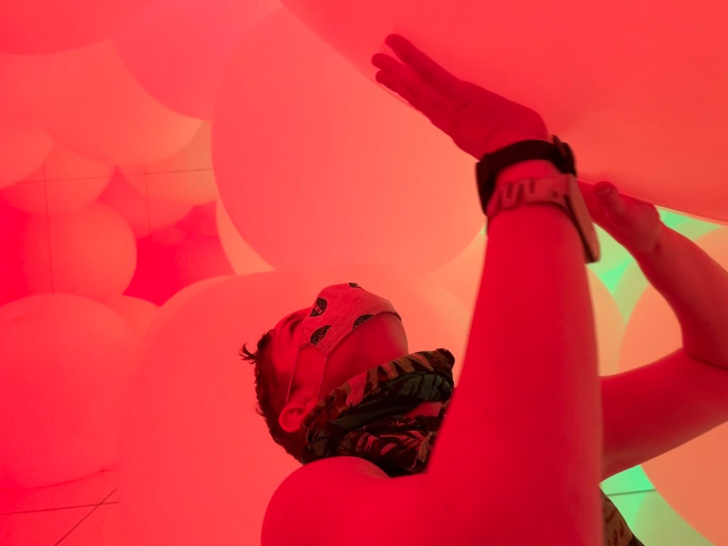 They also had a hallway and a room with bumps and lumps and different densities and textures. They talked about how flat and hard and square a world we live in. We did some somersaults and falls in the big soft room but forgot pictures there. Then…