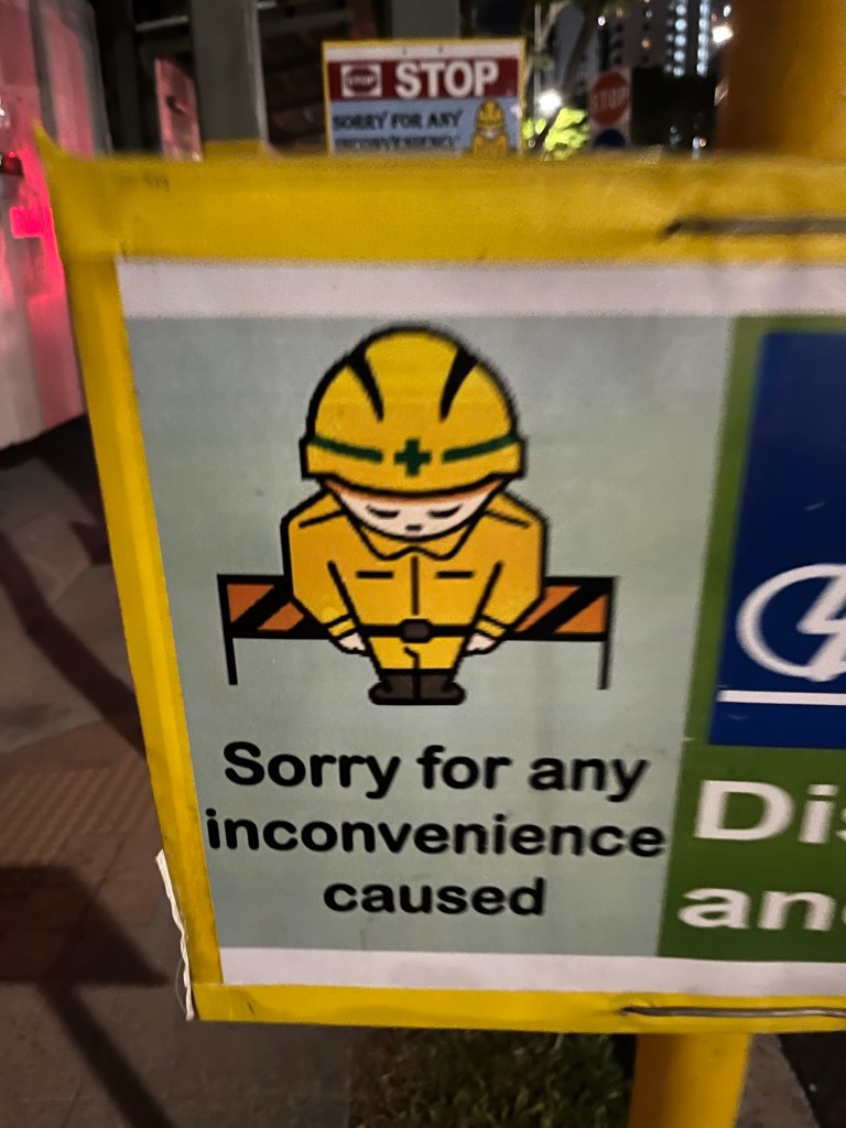 This sign is pretty much anywhere there is construction. It is so cute and polite to an extent that impressed me. Back to the Gardens. The hotel is pretty impressive…