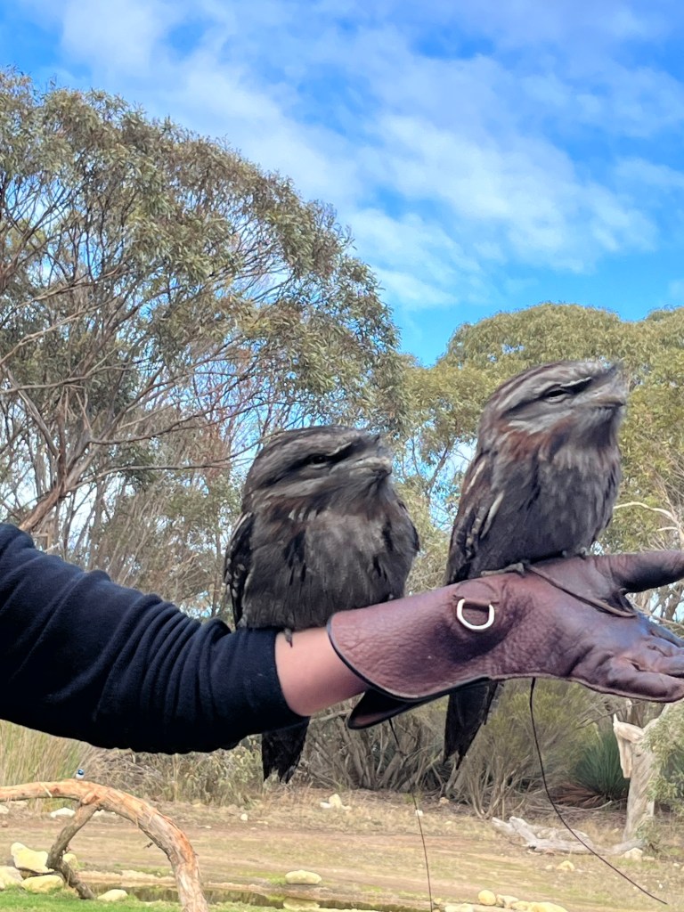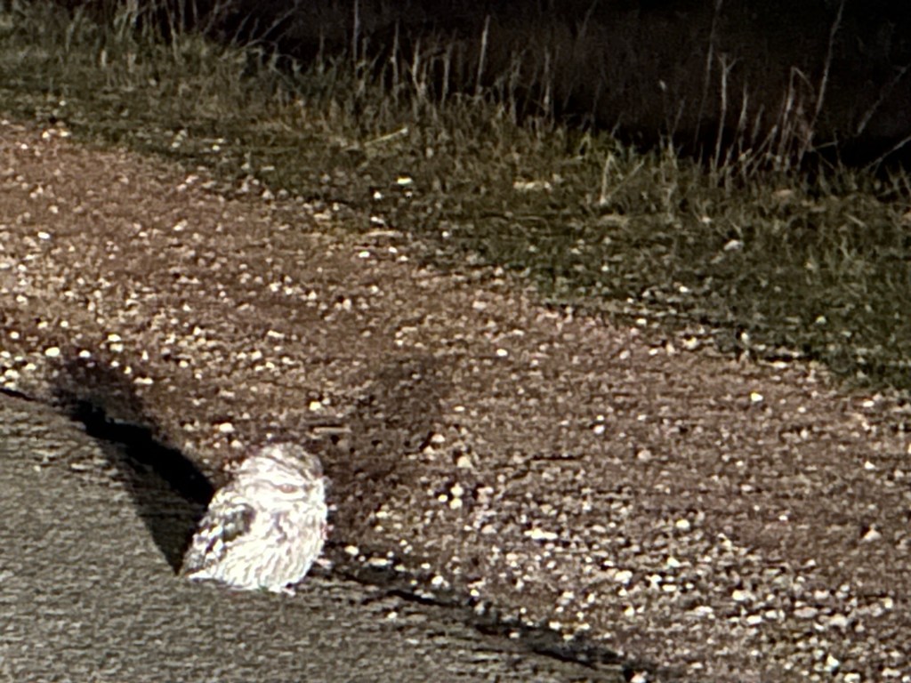 And we saw this guy, a tawny frogmouth. Not on our side, but so special we shined our lights on it to see. Seems like an owl, but not quite it’s in the nightjar family. He was quite content to sit there in our lights.
