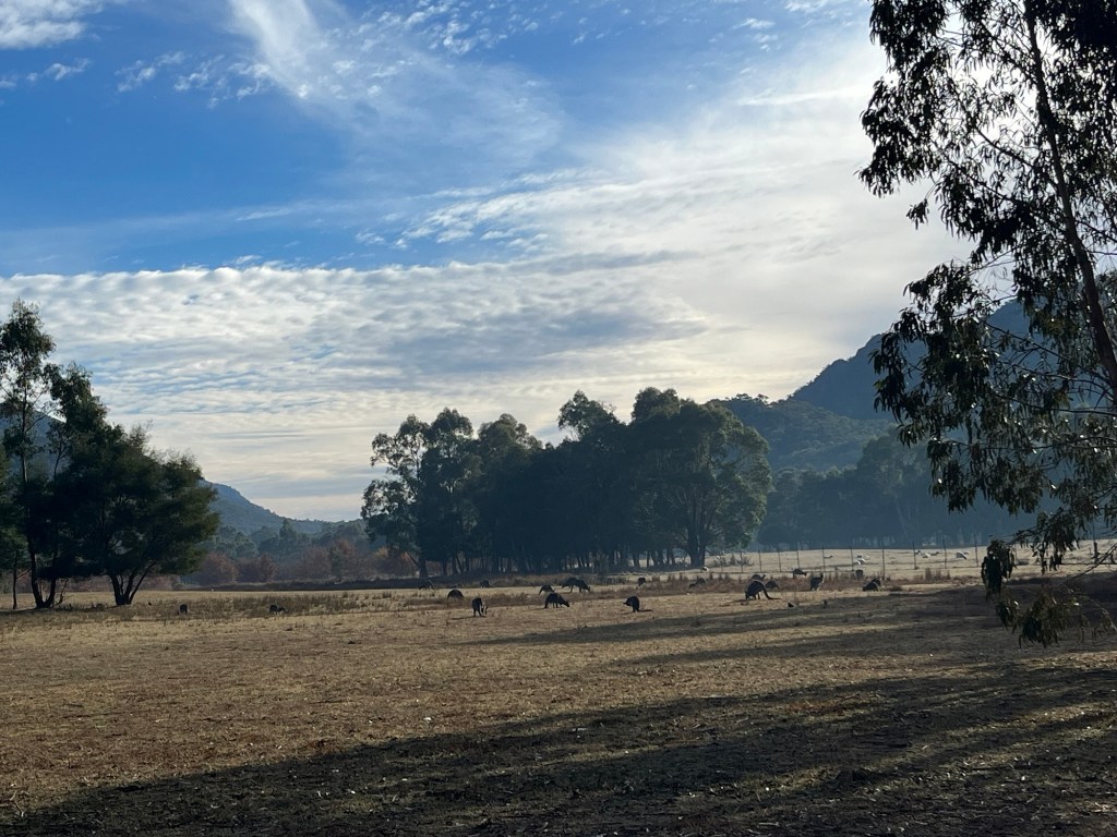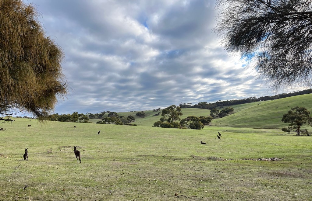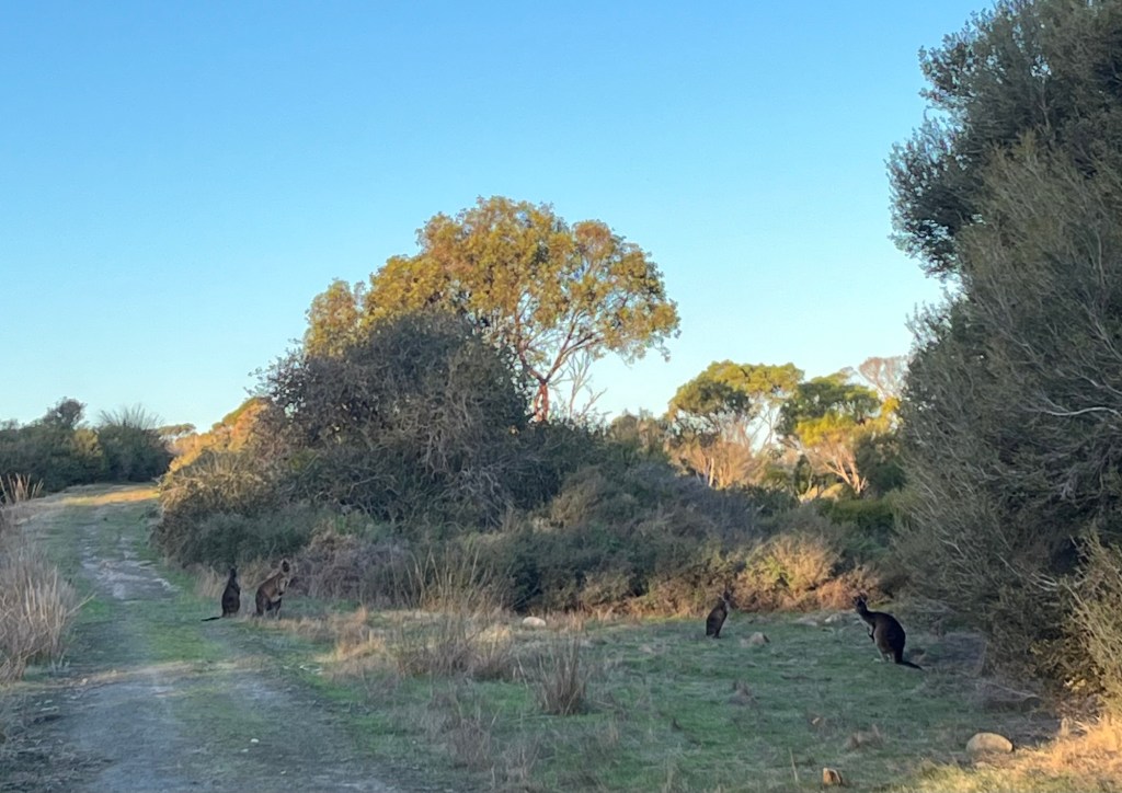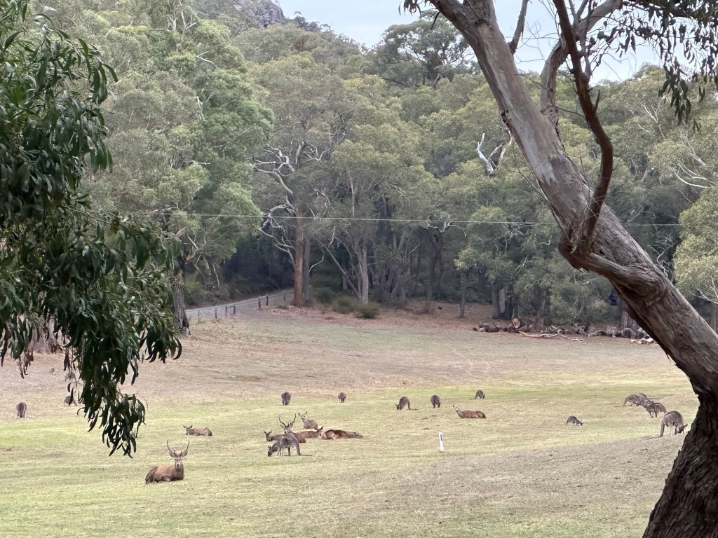 They have deer here. I don’t know how or why…. They seem to be on watch and the kangaroos trust that they will let them know if they should worry. we also saw wild emus, but not close enough to photograph.