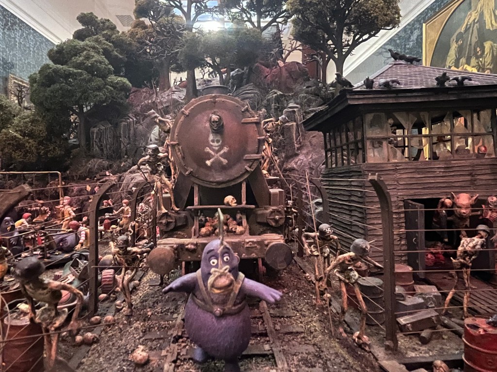 This diorama was disturbing- a mix of McDonalds characters, nazis, trains, and various hard labors there was no explanation on the placard…