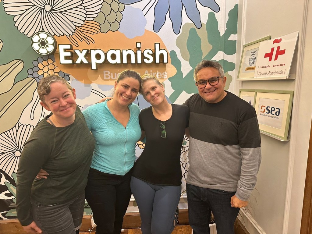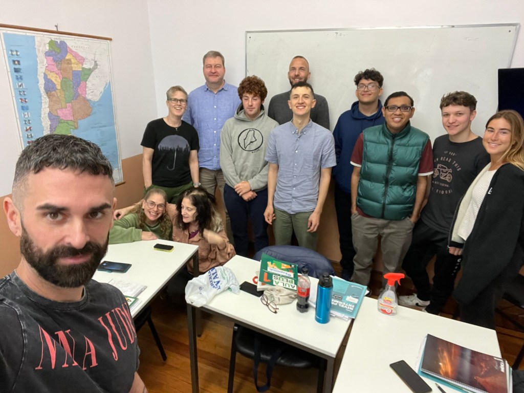 My class: Australia, Israel, Argentina (teacher), me, Germany, Boston, Netherlands, New York, Miami, Indonesia, Germany, Los Angeles. I loved meeting so many people from many places, and having Americans too. It is really a special mind bender for me to hear Spanish with a German accent. I had more German, and earlier, and I get German words in my head when trying think for Spanish.