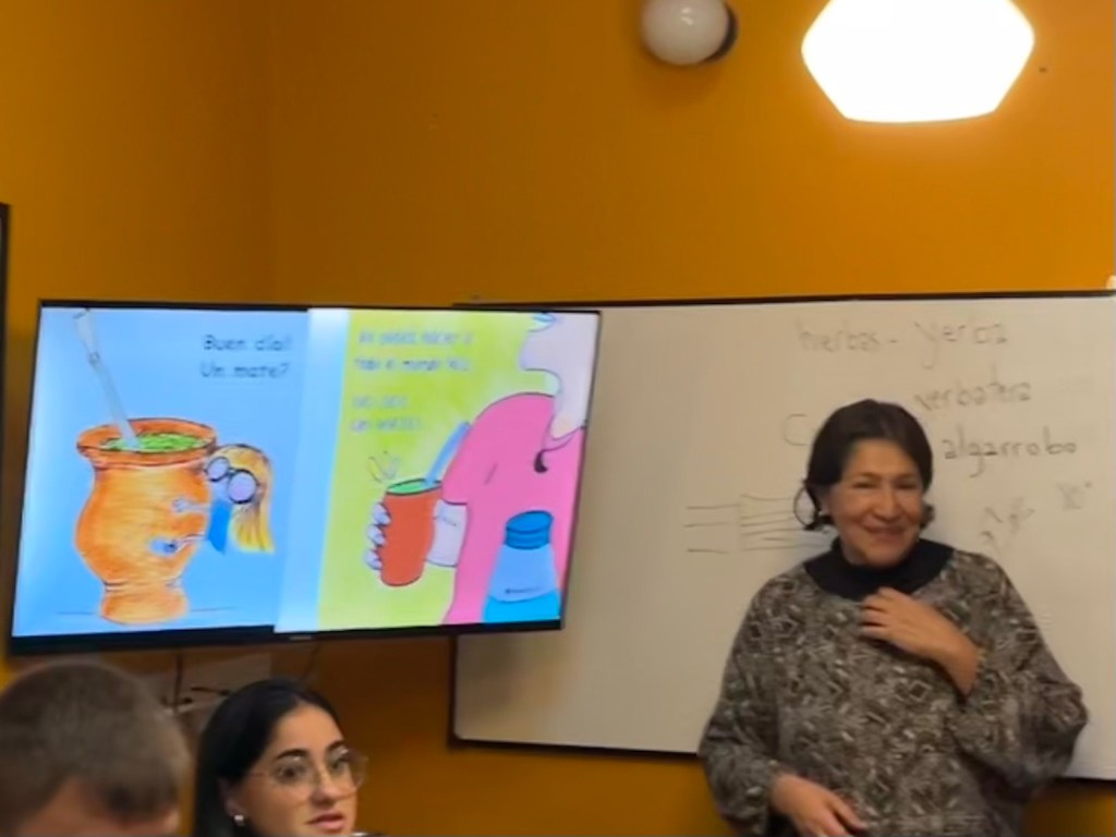 Teacher, Rosanna, teaching us about Mate. We had taste tests and learned some health benefits. And how hard it was on this culture to stop sharing the bombilla (special straw) and thermos of Mate in gatherings of families and friends during the Pandemic. It normally is just passed around.