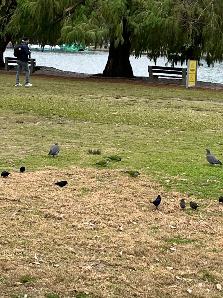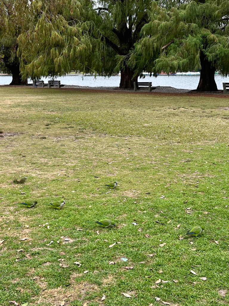 A big park is right by our apartment and there are Monk parrots as well as ducks and more common birds.