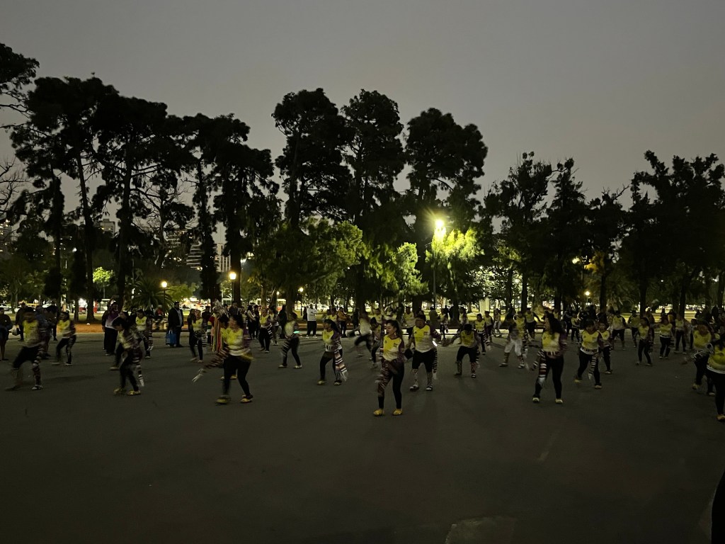 A different park and the same Zumba teacher in the park.