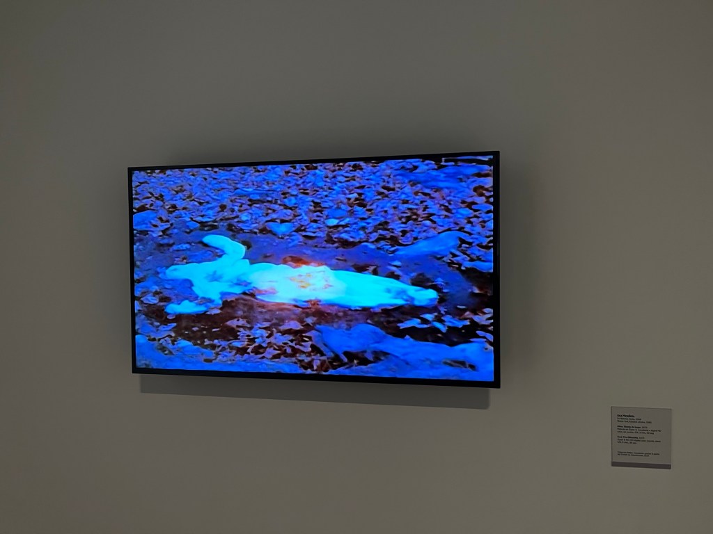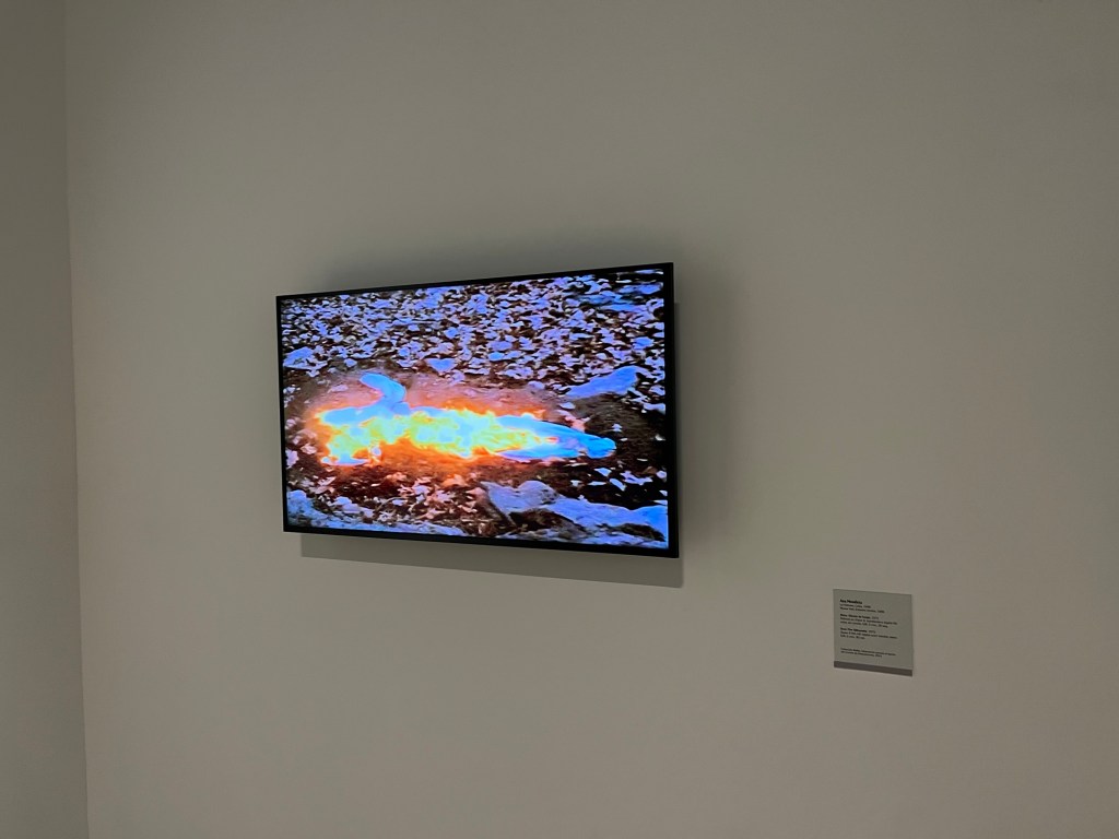 An impression the shape of a woman, filled with flammable liquid and burned. I think it was about climate change…