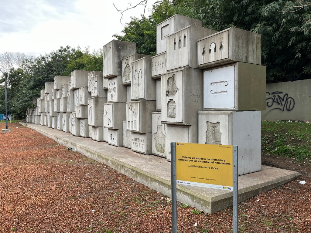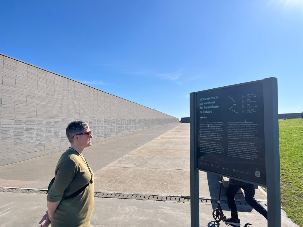 This monument is moving too. The names and dates of “the disappeared” during the “dirty war”. An estimated 30,000 liberals, intellectuals, trade unionists, some pregnant women, and a disproportionate number of Jews were disappeared between 1969-1983. There are four of the walls behind Zarah.