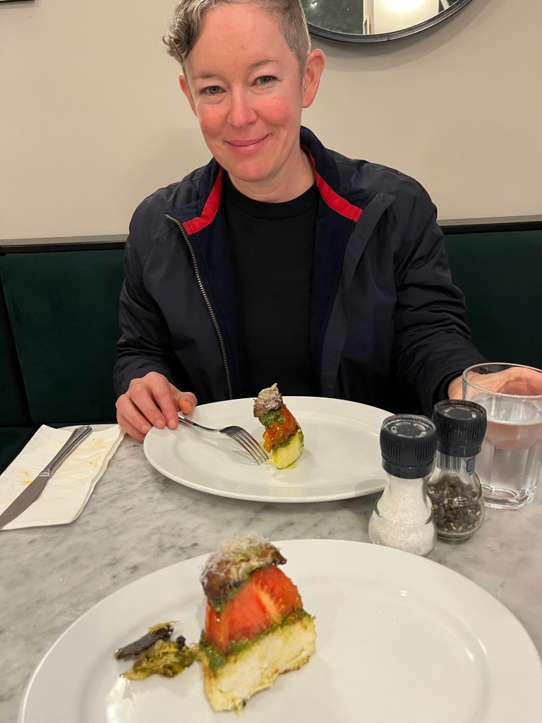 And the food! This was one of many favorite meals… Polenta, pesto, tomatoes, portobello, and parm.. I meant to make this at home! I had forgotten. Then a salad with roasted squash and grew and a deep mushroom risotto… we didn’t go far from home or research much, but we ate very well here.